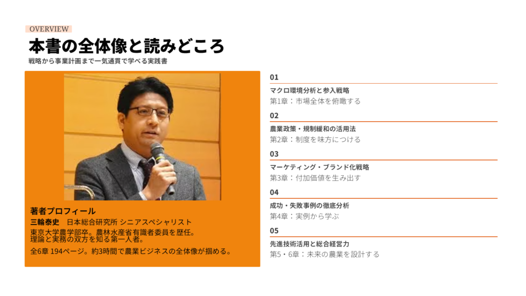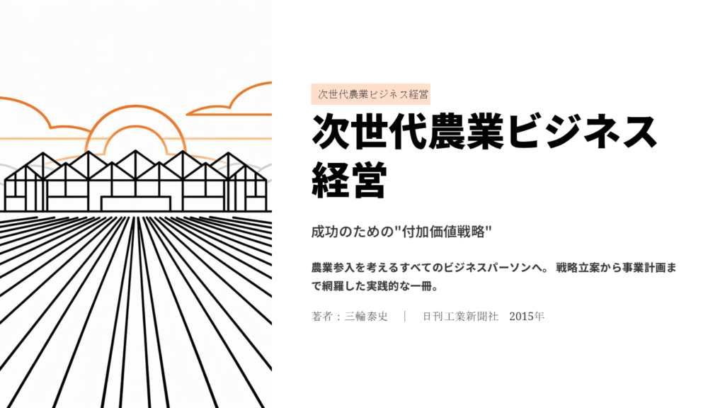 - おすすめ対象:農業参入を検討する企業担当者、農業法人経営者、農業に関心のある若手ビジネスパーソン
